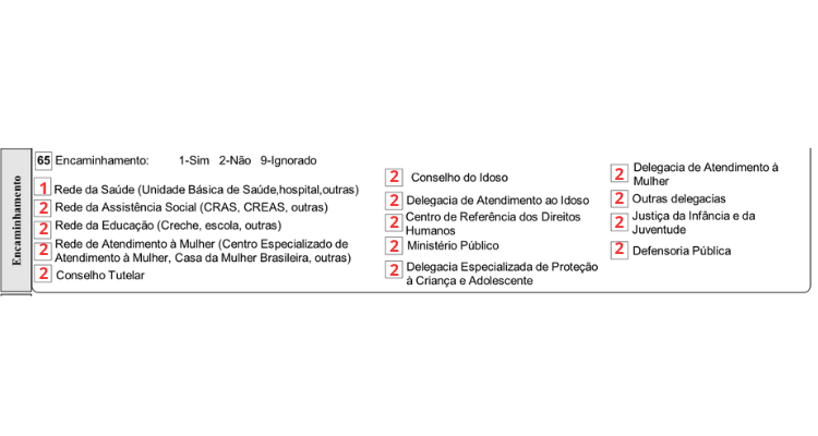 - Múltiplos Encaminhamentos: Pode haver mais de um encaminhamento (ex.: para a Rede de Assistência Social, Delegacia, Centro de Referência). Neste caso, todos os encaminhamentos realizados devem ser assinalados.