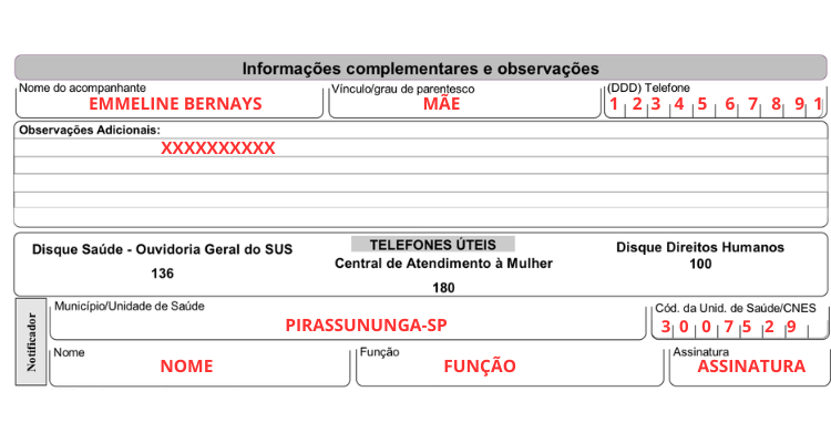 - A identificação do profissional responsável pela notificação (seu nome e assinatura) é opcional. Esta decisão fica a critério da gestão local como uma ação de proteção ao profissional envolvido no atendimento e registro.